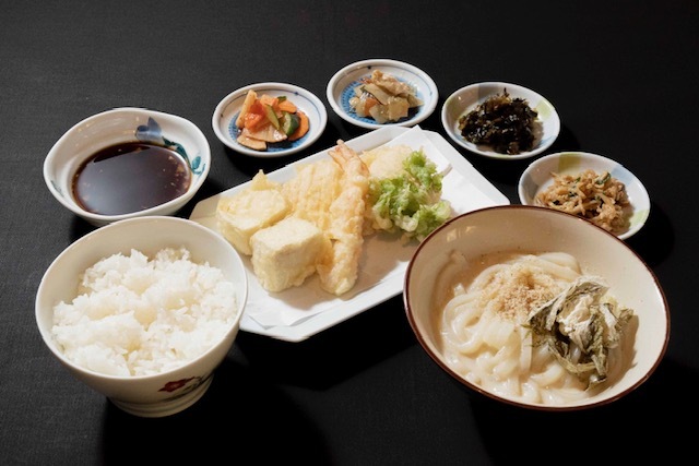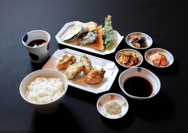 海老×1、白身×1、鶏×1、豆腐×2、野菜×1、ご飯、お惣菜